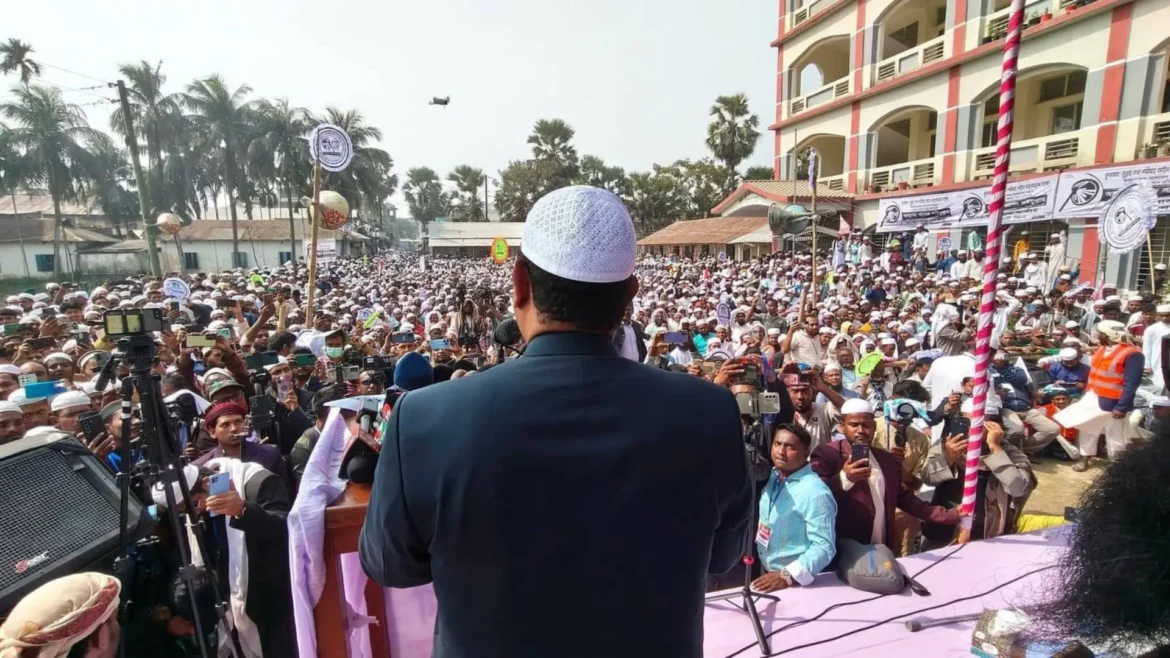 পীর সাহেব চরমোনাই আরো বলেন, মহান আল্লাহ বলেছেন যে জাতি নিজেদের ভাগ্য পরিবর্তনের চেষ্টা না করে, আমি সে জাতির ভাগ্যের পরিবর্তন ঘটাই না। চব্বিশের গণঅভ্যুত্থানের পরে এ দেশটাকে সুন্দরভাবে গড়ার একটা সুযোগ এসেছে। এ লক্ষ-উদ্দেশ্য নিয়ে যখন আমরা আওয়াজ তুলেছিলাম ইসলামের পক্ষে একটা বাক্স। সারা বাংলাদেশের মানুষের সারা ও উদ্দীপনা সেভাবে আমরা দেখতে পেয়েছি। মানুষ পরিবর্তনের পক্ষে যখন আওয়াজ তুলেছিলো তখন একশ্রেণির ক্ষমতালোভী স্বার্থান্বেষী মহল ইসলামের পক্ষের বাক্সের পরিবর্তে তারা আবার ঘোষণা করলো ইসলামের নীতি আদর্শ অনুযায়ী তারা দেশ চালাবে না, দেশ চালাবে প্রচলিত আইন এবং নীতি আদর্শের মাধ্যমে। তখন আমরা হতভম্ব হয়ে গেলাম। তখনই ইসলামী আন্দোলন বাংলাদেশের যে ঘোষণা ছিলো ইসলামের পক্ষের বাক্স তা রক্ষার জন্য, এবং ইসলামের ইজ্জতকে রক্ষার জন্য হাতপাখা নিয়ে এককভাবে ২৫৮ আসনে নির্বাচন করার সিদ্ধান্ত নিয়েছি। তারই একটা অংশ লক্ষীপুর-১ আসন।