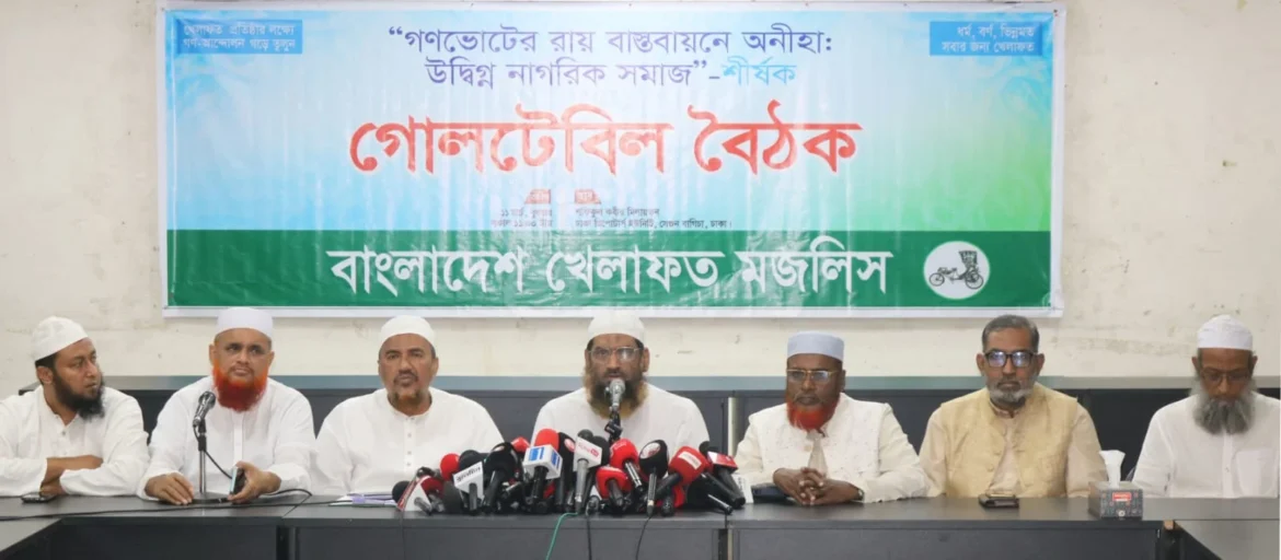 আজ ১১ মার্চ, বুধবার, তিনি বাংলাদেশ খেলাফত মজলিসের উদ্যোগে সকাল ১১:০০ টায় ঢাকা রিপোর্টার্স ইউনিটির শফিকুল কবীর মিলনায়তনে “গণভোটের রায় বাস্তবায়নে অনীহা: উদ্বিগ্ন নাগরিক সমাজ” শীর্ষক এক গোলটেবিল বৈঠকে সভাপতি-এর বক্তব্য রাখছিলেন ।
